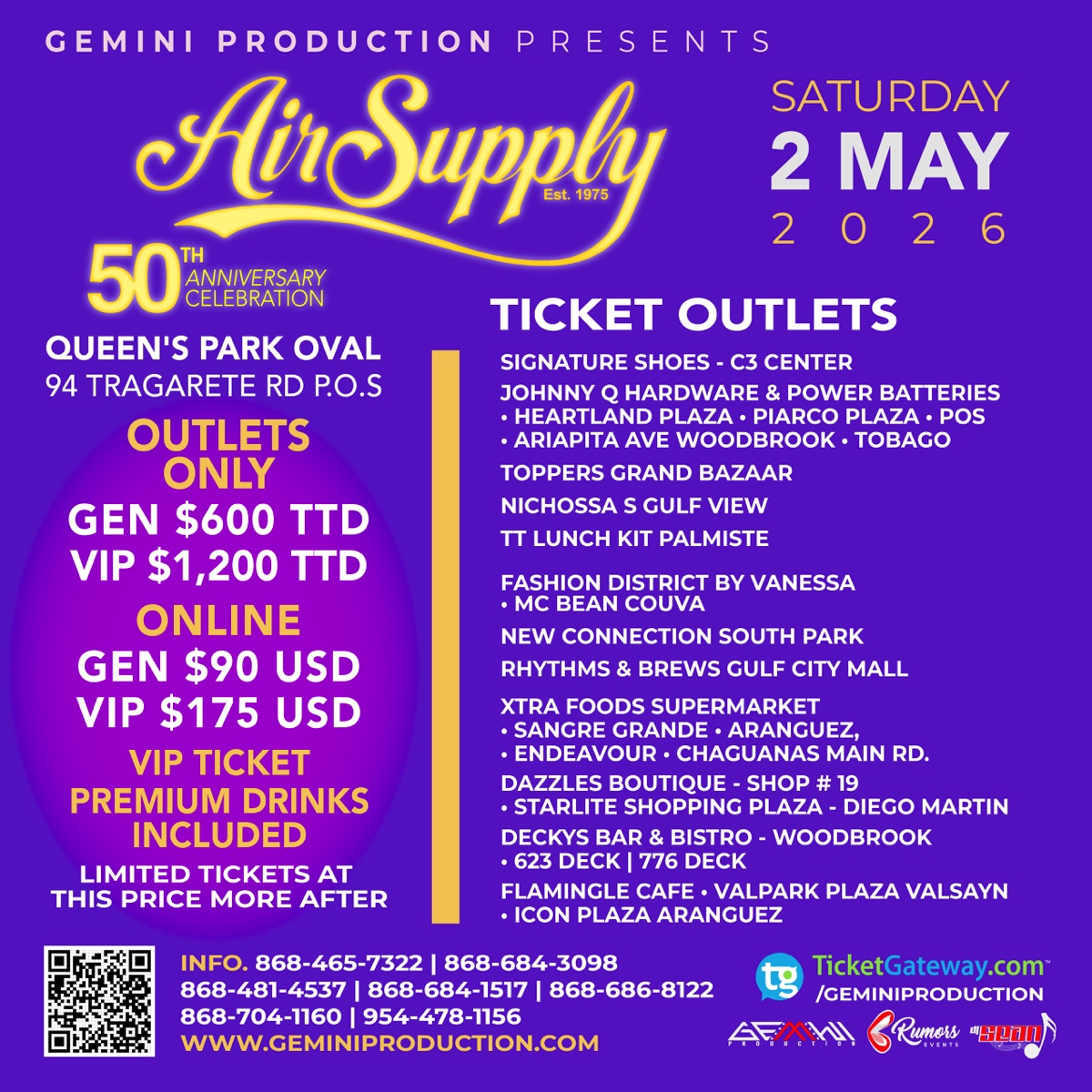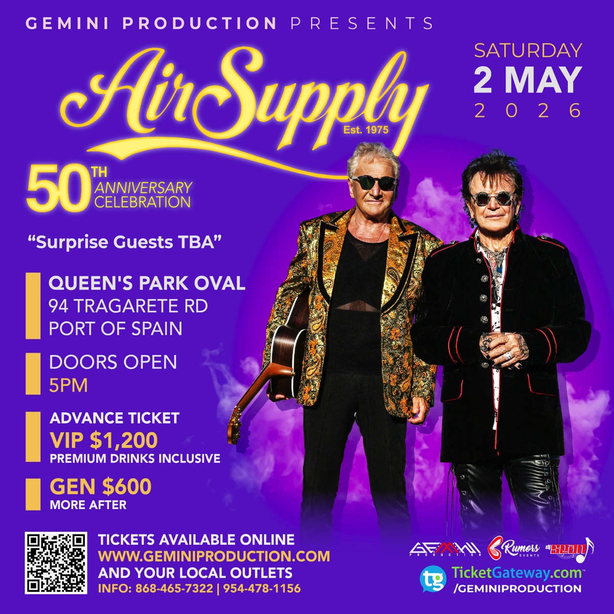 AIR SUPPLY • 50TH ANNIVERSARY CELEBRATION • SATURDAY 2ND MAY 2026 • QUEEN’S PARK OVAL • DOORS OPEN 5PM • TICKETS • PARKING • ENTRANCE • KIDS TICKET • HOTEL ACCOMMODATION • LEARN MORE •AIR SUPPLY • 50TH ANNIVERSARY CELEBRATION • SATURDAY 2ND MAY 2026 • QUEEN’S PARK OVAL • DOORS OPEN 5PM • TICKETS • PARKING • ENTRANCE • KIDS TICKET • HOTEL ACCOMMODATION • LEARN MORE •