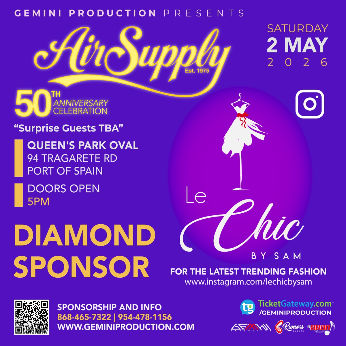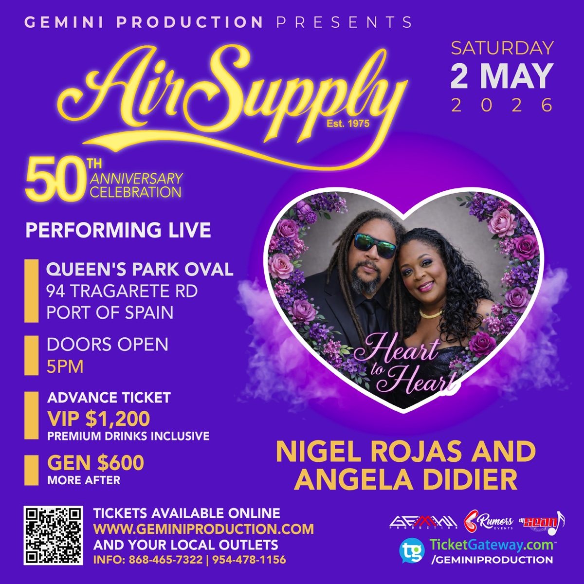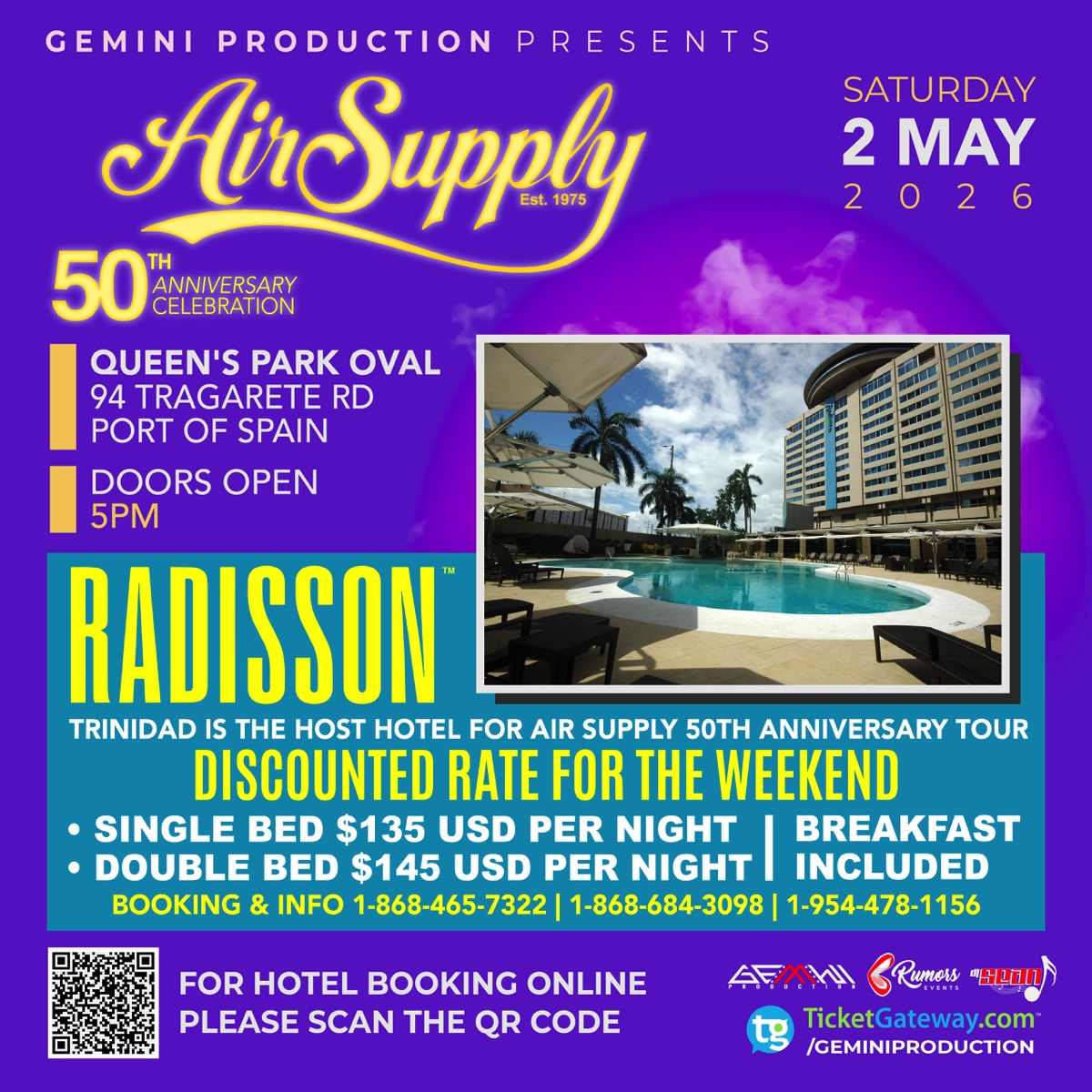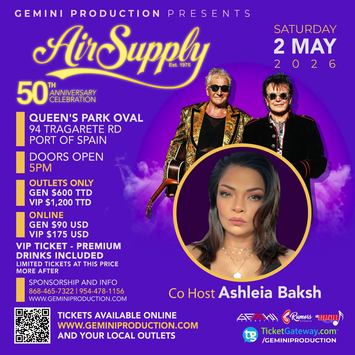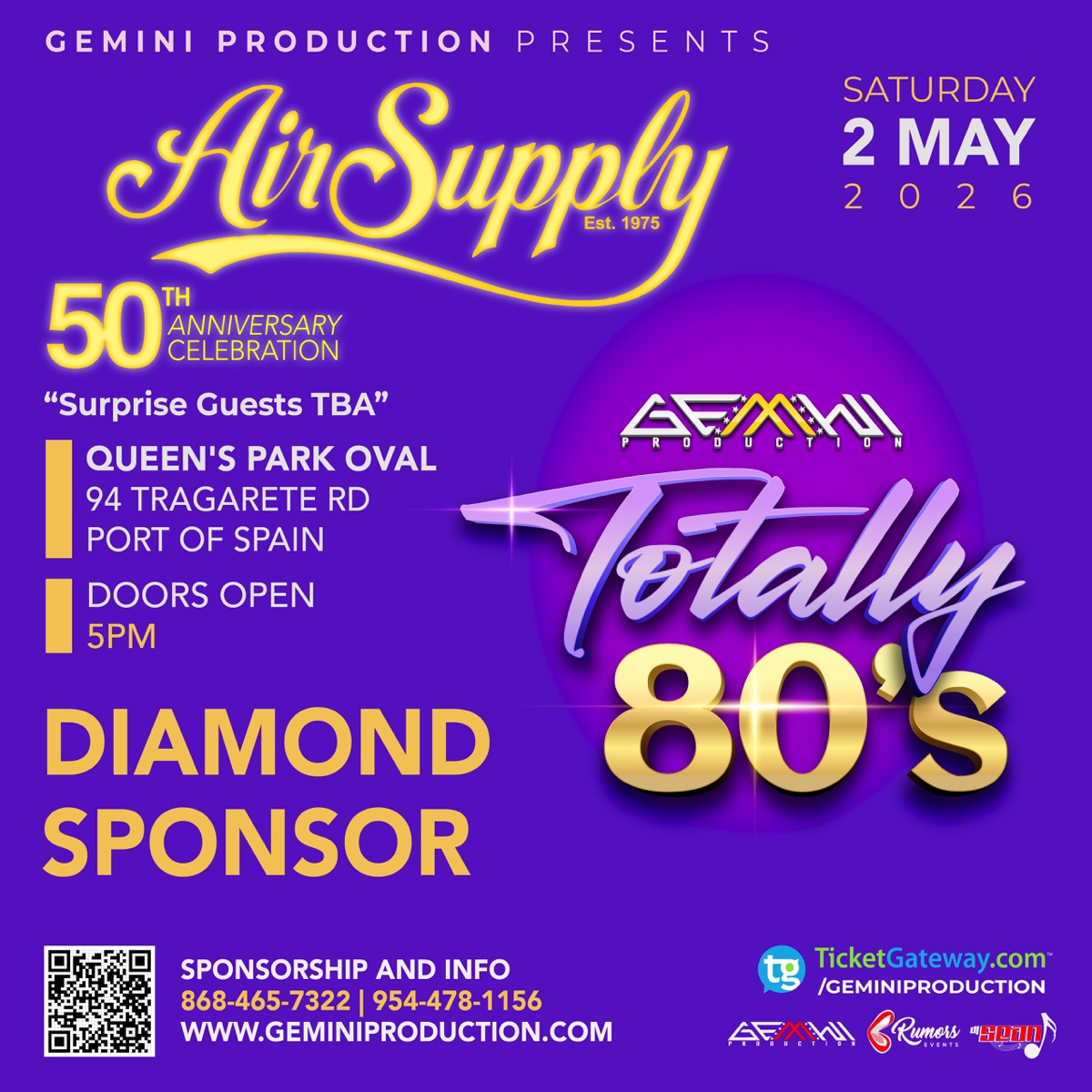 AIR SUPPLY • 50TH ANNIVERSARY CELEBRATION • SATURDAY 2ND MAY 2026 • QUEEN’S PARK OVAL • DOORS OPEN 5PM • TICKETS • PARKING • ENTRANCE • KIDS TICKET • HOTEL ACCOMMODATION • LEARN MORE •AIR SUPPLY • 50TH ANNIVERSARY CELEBRATION • SATURDAY 2ND MAY 2026 • QUEEN’S PARK OVAL • DOORS OPEN 5PM • TICKETS • PARKING • ENTRANCE • KIDS TICKET • HOTEL ACCOMMODATION • LEARN MORE •